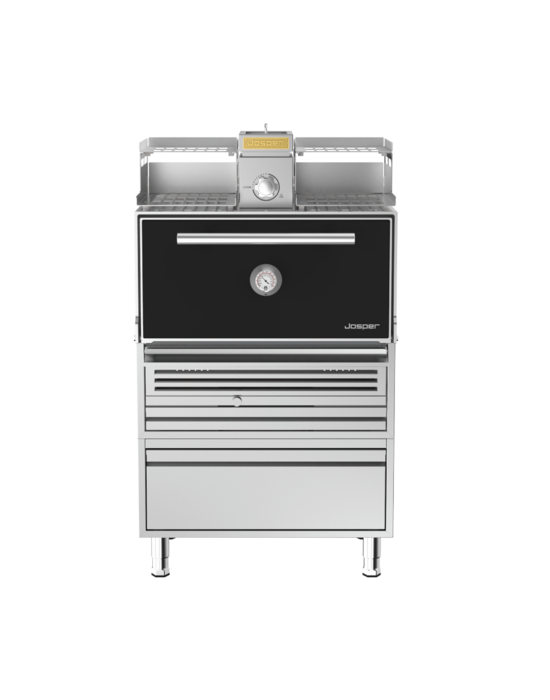 HJX-PRO Medium (M120) Ovaj model gril peći je Josperova peć na drveni ugljen srednje veličine, s postoljem koje ima dodatni prostor za pohranu i grijačem hrane W, te dodatnu ladicu D za povećanje funkcionalnosti.